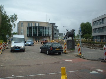 Op woensdag 30 mei 2012 is het grote werk begonnen. Dit gaat onvermijdelijk gepaard met overlast voor het verkeer. Helaas is de overlast voor fietsers groter dan nodig, doordat omleidingen en afsluitingen in het geheel niet zijn aangegeven. Het fietspad langs de Prins Bernhardlaan is plaatselijk afgesloten. De fietsers worden omgeleid via het tijdelijke busstation aan de Havenstraat. Op zichzelf is dat geen slechte route, alleen oogt het vrij rommelig. Ook stond in eerste instantie nergens aangegeven dat je die route moet nemen om langs de werkzaamheden op je bestemming (station bijvoorbeeld) te komen.