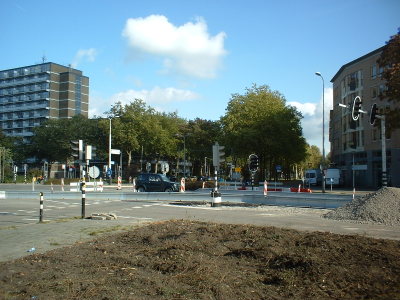 Mede doordat er op een onverwachte plaats kabels in de grond werden aangetroffen, liepen de werkzaamheden uit. Sinds begin oktober 2012 kan de rotonde deels gebruikt worden. De toplaag van het asfalt moet er nog op, maar fietsers kunnen al wel langs de Prins Bernhardlaan over het nieuwe fietspad van de rotonde fietsen. Ze hoeven dus niet meer om te rijden via het tijdelijke busstation. (aangevuld, 12 oktober 2012)