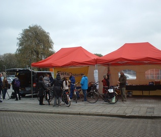Stand van Fietsersbond aan De Vest in Alphen aan den Rijn